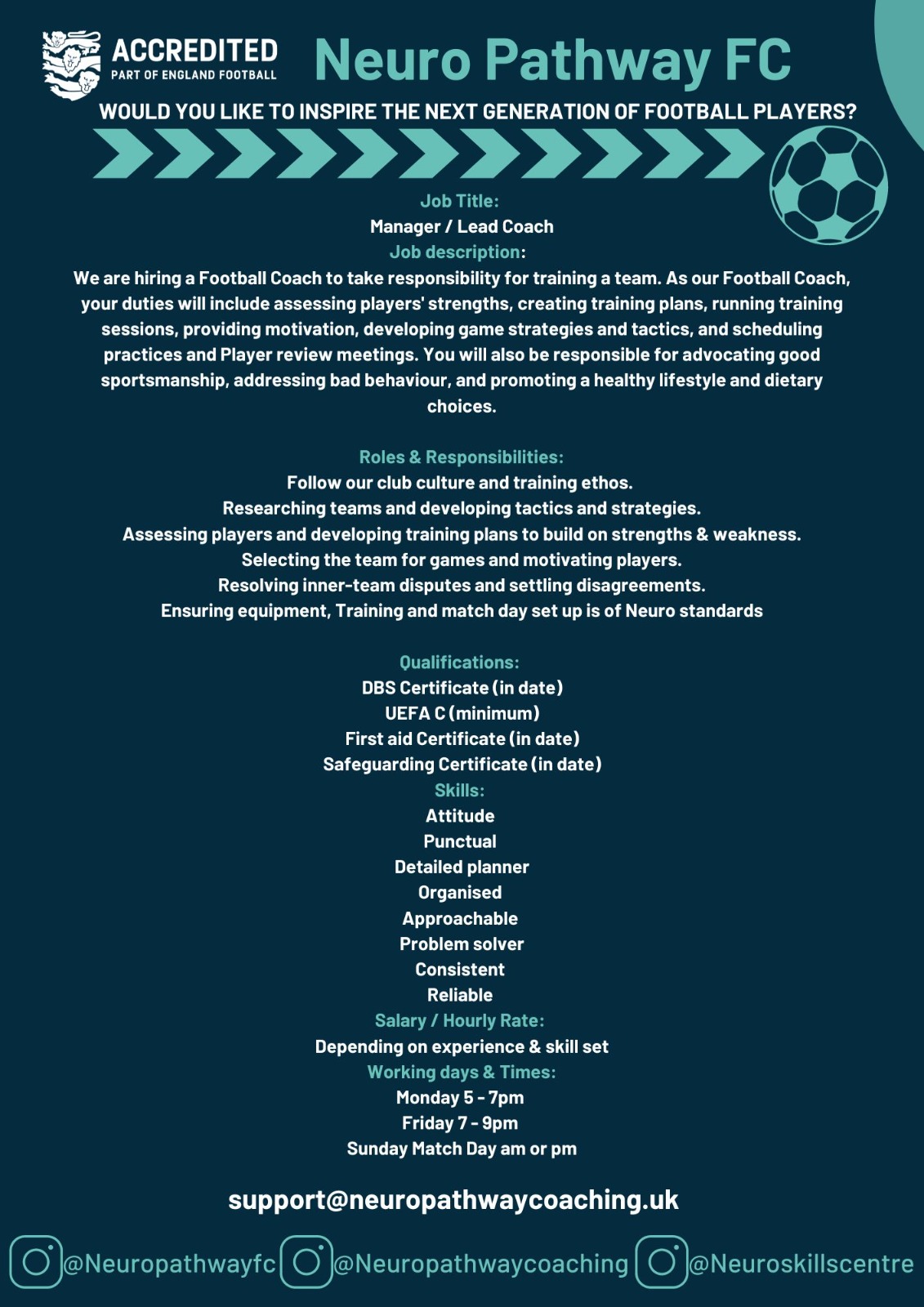 Please register your interest in becoming a Neuro Pathway FC Coach by completing the form below.